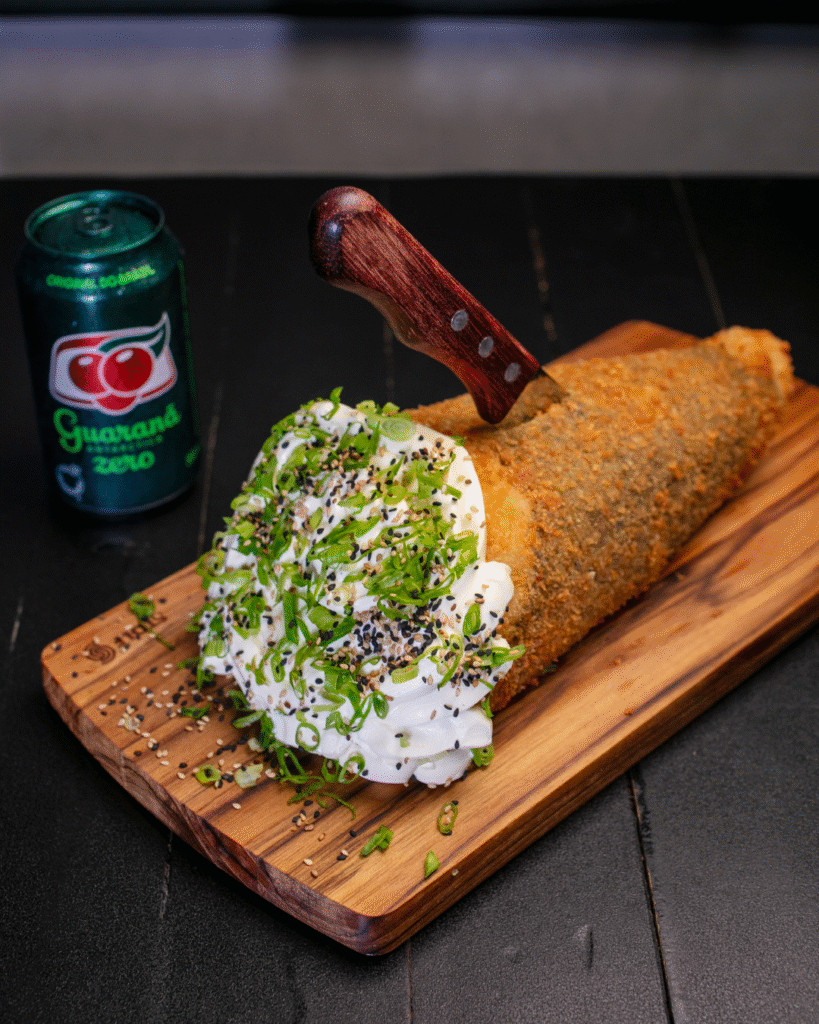 Experimente o irresistível SuperTemaki de aproximadamente 1,5kg, recheado com salmão fresco, arroz macio e cream cheese, tudo envolto em uma crocante camada empanada. Uma explosão de sabor que vai conquistar seu paladar! Ideal para compartilhar momentos especiais!